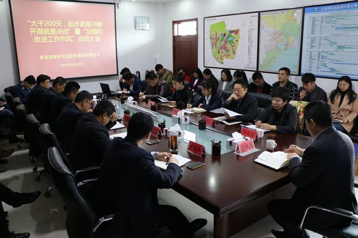 本報(bào)訊 3月18日,青島西海岸交通投資建設(shè)有限公司召開(kāi)“大干200天,起步就是沖刺,開(kāi)局就是決戰(zhàn)”暨“加強(qiáng)和改進(jìn)工作作風(fēng)”動(dòng)員大會(huì),深入學(xué)習(xí)貫徹全區(qū)“項(xiàng)目落實(shí)年”、“改革創(chuàng)新年”和“作風(fēng)建設(shè)年”活動(dòng)精神,深化作風(fēng)建設(shè),推進(jìn)項(xiàng)目落實(shí),高標(biāo)準(zhǔn)、高效率、高水平推進(jìn)青島西客站規(guī)劃建設(shè)。